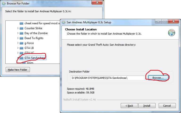 *Jika anda menginstall GTA SanAndreas di folder lain ingat letak folder tersebut karena akan digunakan saat install samp